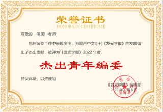 段羽教授被聘为中国感光学会第一届青年理事会理事