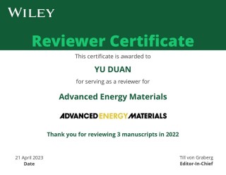 The certificate of ADVANCED ENGINEERING MATERIALS ' reviewer